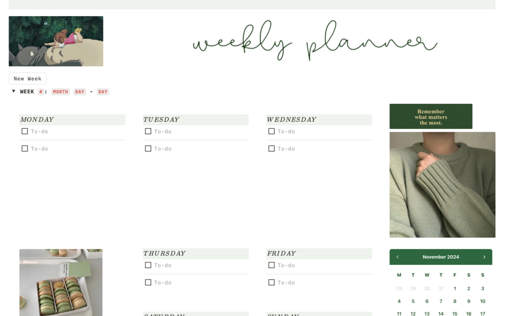 A Studio Ghibli-inspired personal planner. Minimalist design meets maximum functionality, with easy-to-use templates generated by simple button clicks. Perfect for daily and weekly planning!